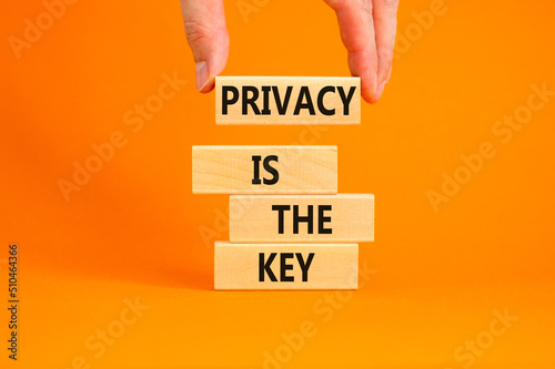 Privacy is the key symbol. Concept words Privacy is the key on wooden blocks on a beautiful orange table orange background. Businessman hand. Business, finacial and privacy is the key concept.