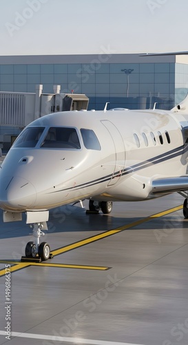 Private Jet at Airport Modern Aircraft, Terminal and Transportation.
