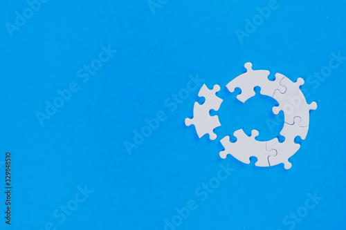 Private pieces per white unfinished jigsaw puzzle on a blue background.