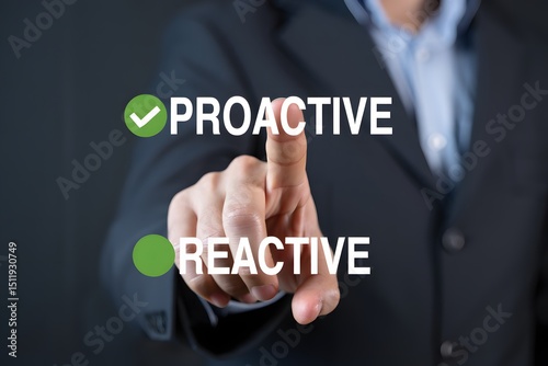 Proactive vs Reactive – Strategic Business Decision Making and Leadership Approach Concept.