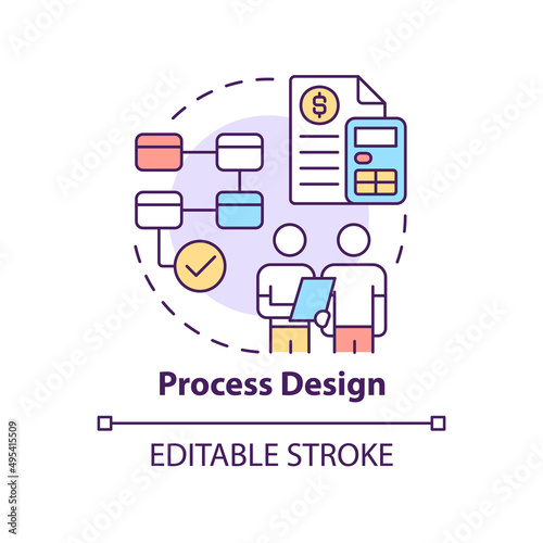 Process design concept icon. Determine plan. Social planning stage abstract idea thin line illustration. Isolated outline drawing. Editable stroke. Arial, Myriad Pro-Bold fonts used
