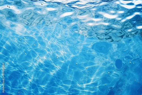Processed collage of blue water waves texture in sunlight. Background for banner, backdrop