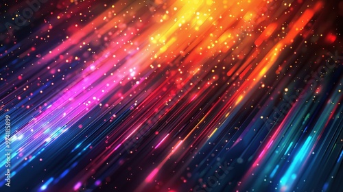 Produce a vibrant futuristic background with dynamic multicolor lines, ideal for captivating digital presentations and high-energy video games