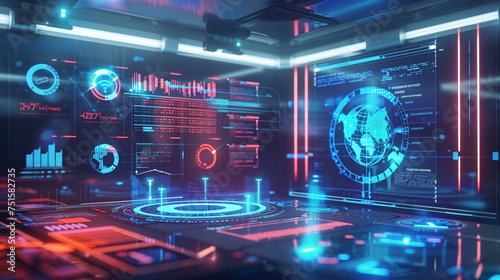 Produce an infographic with a unique twist incorporating hologram elements to visualize data in a futuristic way