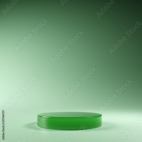 Product display podium jade on green background. 3D rendering