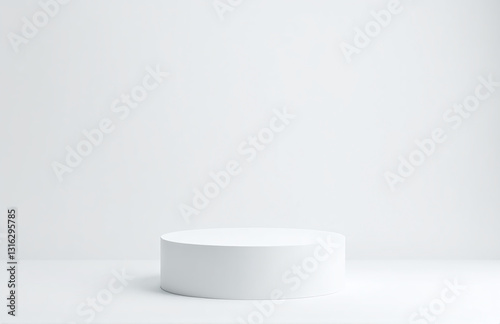 Product Display Setup Features An Empty Podium Or Pedestal On A White Background With A Box Stand And Blank Shelf.