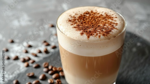 Product photo of nitro cold brew coffee, on slate surface, isolated on dark background. studio lighting.