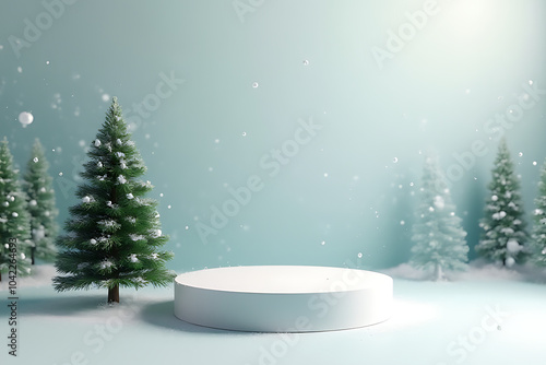 product podium features christmas tree snow scene render background holiday design decoration purposes
