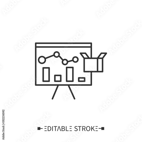 Product presentation line icon. Promotion. New product introduction. Business presentation conference. Presentation event. Stages and elements of a successful production cycle. Editable stroke