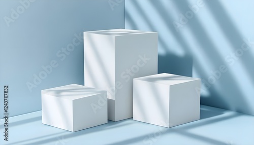 product presentation with shadows and light. Empty podiums. Mockup,minimalist white cubes,Minimalist Arrangement Of White Cubes With Soft Shadows.A stage for the demonstration of cosmetics.