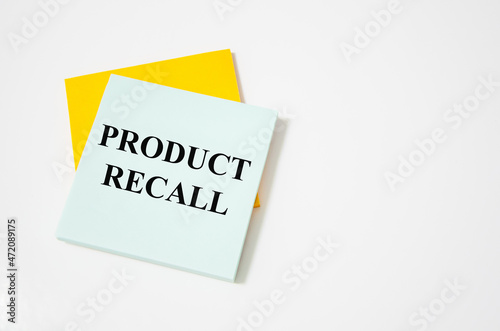 Product Recall text written on a white notepad with colored pencils and a yellow background. word