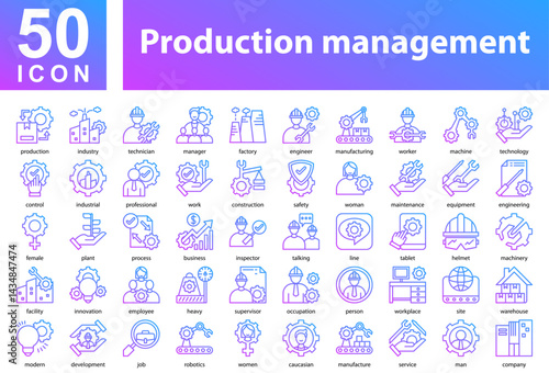 Production Management Icon Collection and Symple Concept Outline Gradient