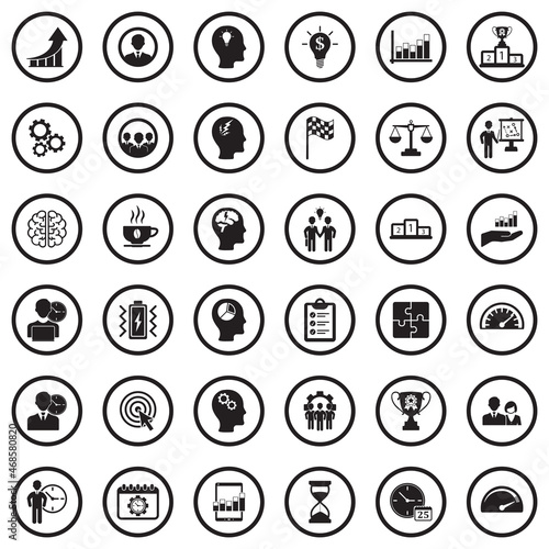 Productivity Improvement Icons. Black Flat Design In Circle. Vector Illustration.
