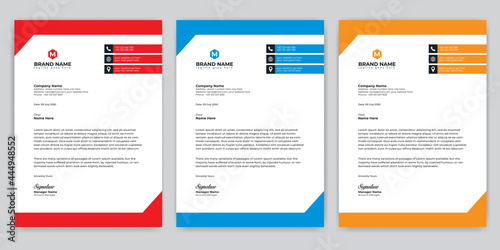 Professional Abstract corporate Letterhead template Design for Advertising Company Profile Layout, Letterhead Design Simple, And Clean Print-ready with Red, Orange and blue CMYK Color 20