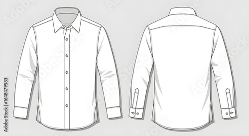 Professional and versatile white dress shirt mockup template, ideal for apparel designers and brands to showcase their clothing designs with a clean, classic aesthetic.