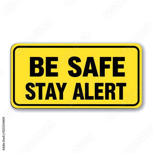 Professional Be Safe Stay Alert Yellow Rectangular Warning Sign Decal with Safety Message Design and Protective Information Elements for Workplace Security Collection