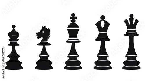 Professional Black Chess Pieces Icons Silhouettes for Strategy and Board Games