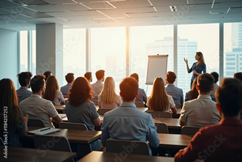 Professional Business Conference with Engaged Audience in a Modern Meeting Room during Presentation
