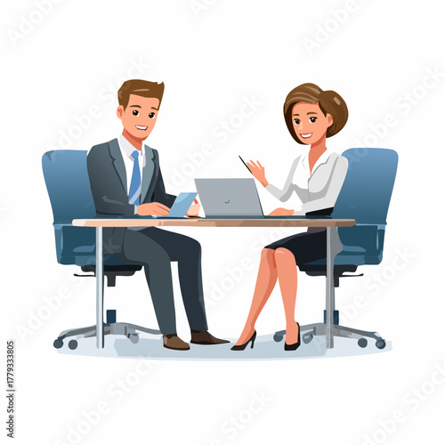 Professional Business Meeting Illustration of Colleagues Collaborating