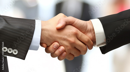 Professional Business Partnership: Confident Businessmen Shaking Hands to Seal a Deal in a Corporate Office Setting, Demonstrating Successful Collaboration, Trust, and Mutual Agreement.