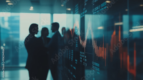 Professional business team working on a project together in the office Using innovation economic growth charts and network connections to accompany the data. in analyzing future trends