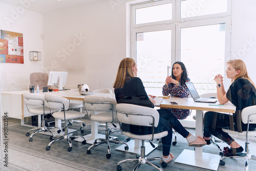 Professional Businesswomen Leading Meeting on New Projects in Modern Office.