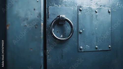 Professional Close-up of Metal Door with Locking Ring for Security Applications