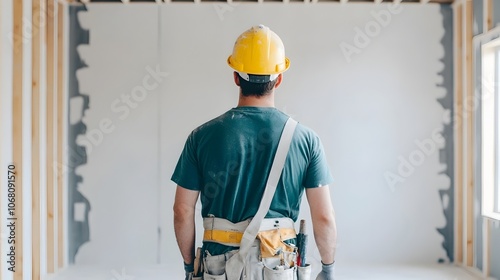 Professional Construction Worker Installing and Securing Drywall Panels in a New Residential Home Interior During Renovation or Remodeling Project