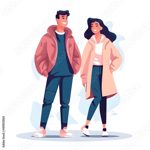 Professional Couple Fashion Portrait: Young Man and Woman in Stylish Modern Clothing