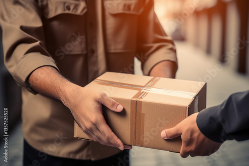 Professional delivery person holding box express fast courier service Generative AI illustration
