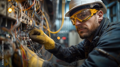 Professional electrician working on an electrical panel