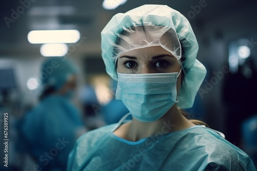 Professional emergency worker doctor medic wearing sterile uniform before operation Generative AI