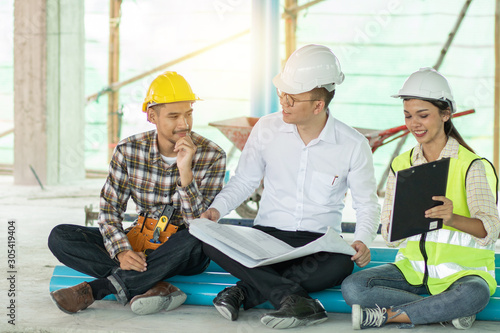 professional engineer siting to planning with team young architect friendly at site construction work