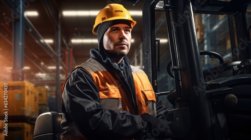 Professional experienced forklift operator managing industrial tasks and managing cargo with a warehouse environment.