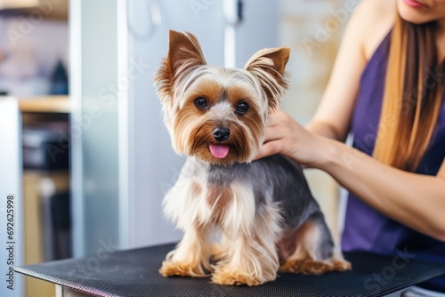 Professional Groomer Giving Trendy Haircut To Cute Dog