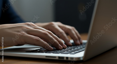 Professional hands typing on a laptop keyboard, representing modern business communication and remote work.