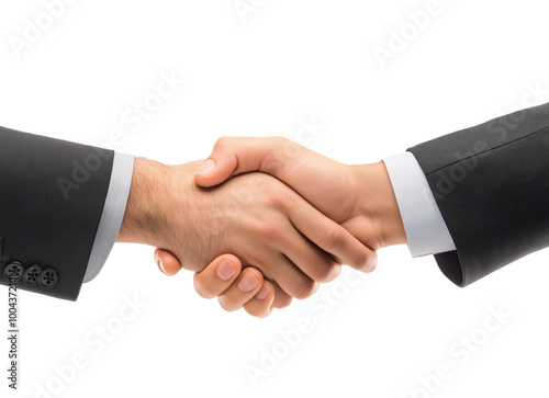Professional handshake between business partners isolated on a transparent background, representing trust, agreement, and successful collaboration in corporate settings