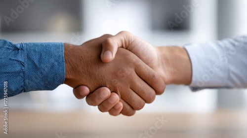 Professional Handshake Between Candidate and Recruiter in Sleek Office Setting with Copy Space for Text