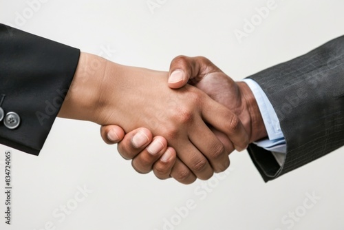 Professional Handshake Between Man and Woman in Suits Following a Job Interview in a Modern Office Setting. Concept of Employment, Business Agreement, and Corporate Professionalism.