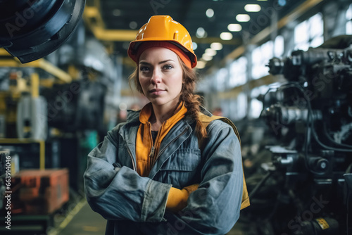 Professional heavy industry engineer worker wearing safety uniform and hard hat. Generative Ai