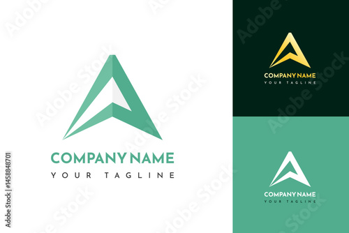 Professional Letter A Logo with Sharp Geometric Arrow Design in Green and Gold for Business and Corporate Branding