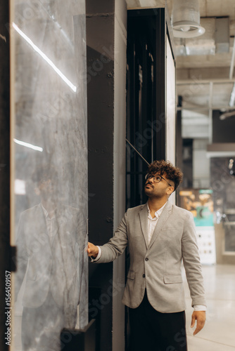 Professional Man Exploring Interior Design Options in Modern Building