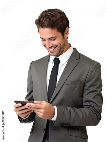 Professional Man in Suit Looking at Cell Phone. Generative AI