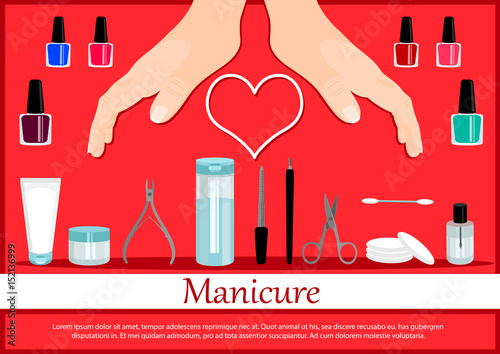 Professional manicure poster in flat style. Nails manicure or hands with manicure. Vector illustration