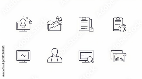 Professional Modern Outline Style Line Art Business Data Analysis Icons Collection | Vector Graphics: Reports Charts User Profile for Web & Mobile Marketing Finance Design