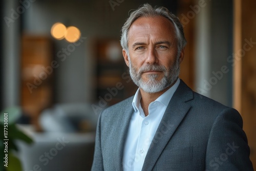 professional portrait of confident 50-year-old business executive in modern office setting with natural light and corporate atmosphere