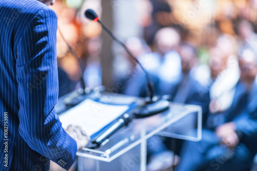 Professional public speaker at business conference, corporate presentation, workshop, coaching training, news conference, company meeting, public or political event
