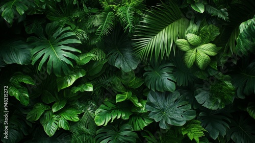 Professional rainforest texture background, dense flora, vibrant greenery, showcasing the rich diversity of tropical nature, suitable for environmental and nature themed design.