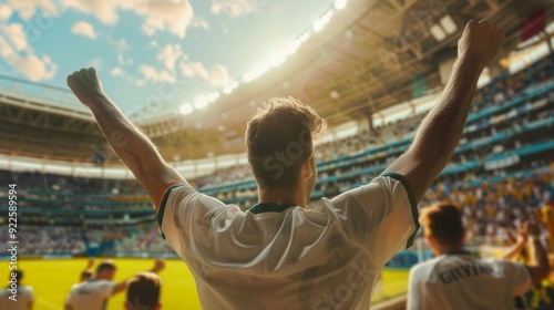 Professional Soccer Player Celebrating Goal with Teammates in Vibrant Stadium Atmosphere