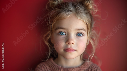 Professional studio photo portrait of a cute little girl, lovely kid with naive face, adorable baby, a child with a emotional expression, widescreen 16:9